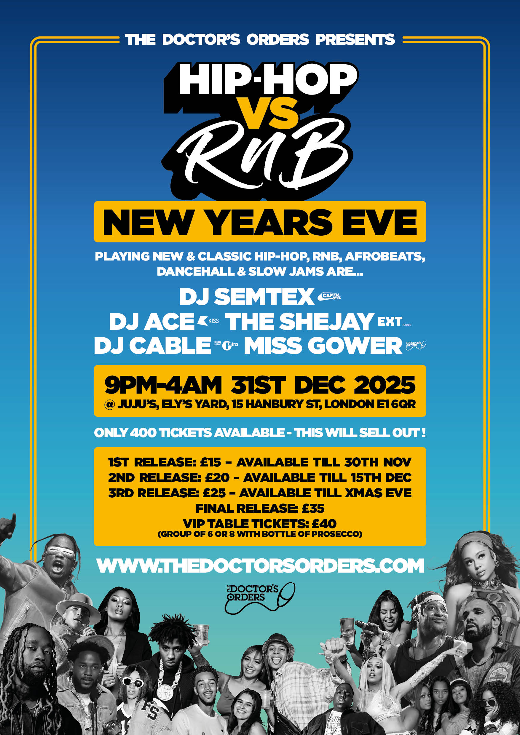 50 years of Hip-Hop 12pm Saturday 12th August 2023 @ Juju’s Bar & Stage, Ely’s Yard, London E1 6QR FREE ENTRY www.thedoctorsorders.com Join us at Juju’s on Friday 11th & Satu...